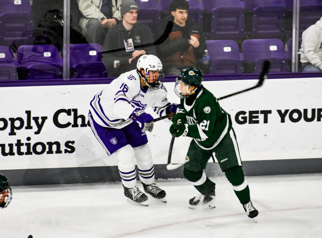 During the opening minute of the third, UST went on the power play again, and it only took 10 seconds for Lucas Van Vliet to fire a puck past Robbins’ glove and extend the lead to 4-1.